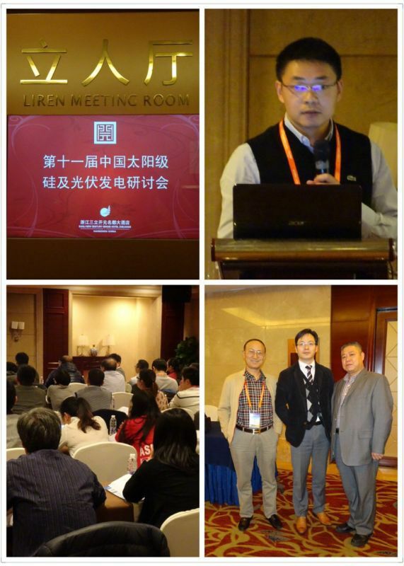 至28日,由中国可再生能源学会、上海交通大学、浙江大学、中山大学和上海市太阳能学会联合主办,杭州福斯特光伏材料股份有限公司承办,浙江正泰新能源开发有限公司、四川东材科技集团股份有限公司、上海清洁能源科技研究中心三家单位共同协办的第十一届中国太阳级硅及光伏发电研讨会(11th CSPV)在杭州召开,我院能源与动力工程系专业教师杜金宇、徐卫星、张冰及卜文静参加了会议。