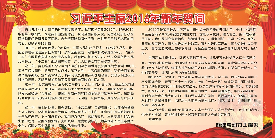 学习进行时:习近平主席2016年新年贺词