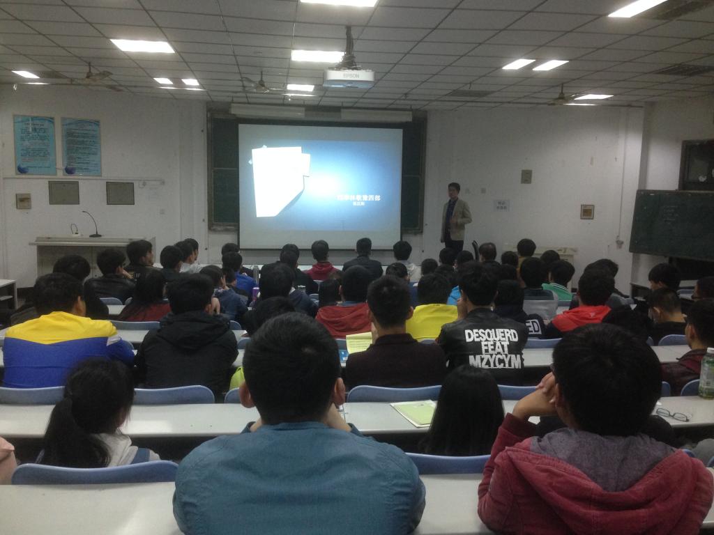 晚上19:00,在教学楼A100张部长为我系新能源、空调专业近百名学生做了题为《不一样的人生》的专题报告。会上,张部长就行业动态、企业文化、政策分析、就业形势、理想与现实等方面与大家进行了分享。针对当前严峻的就业形势,他提出了进入四季沐歌面临的良好机遇和挑战,并重点介绍了公司人才培养机制以及公司求才若渴、广纳天下英才的雄伟气魄。其深入浅出、幽默生动、富有激情的演讲赢得了师生的阵阵掌声。会后张部长对部分13级相关专业学生进行了面试。