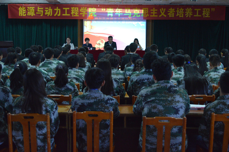 10月20日,能源与动力工程学院2016年“青年马克思主义者培养工程”培训班开班典礼暨学生干部就职仪式在教学楼六楼会议室隆重举行。院党总支副书记李建伟、团总支书记党美珠、辅导员耿李姗、学生干部及培训班学员200余人参加了典礼,开班典礼由杨涛老师主持。