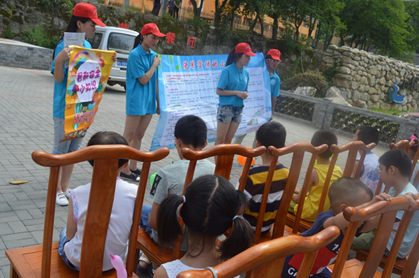 针对新县水资源丰富,入夏以来学生溺水事故的增多的情况,为提高留守儿童的安全防范意识及自救自护的素养和能力,减少乃溺水事故的发生,队员们精心准备写真、海报、宣传页等,用图文并茂、生动有趣的方式为小朋友们讲解防溺水“六不”口令、意外溺水后自救小措施和他救小方法等内容,同时队员们还为小朋友们讲解了关于“用电安全”“饮食卫生安全”“交通安全”等知识,并结合专业特长向小朋友们讲解空调工作原理、正确使用方式、节能减排技巧。讲解期间队员们设计了游戏、节目、竞赛等多种形式,寓教于乐的方式吸引了周围更多的村民和小朋友。队员们还为小朋友们准备了彩笔、文具等礼物。