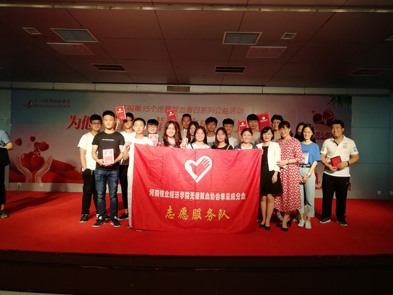 在第15个世界献血者日的到来之际,6月9日下午2:30,河南省红十字血液中心隆重举行2018年省会高校单采成分血团队年度表彰大会暨“为他人着想,捐献热血,分享生命”演讲比赛活动。我院无偿献血协会师生34人受邀参加了此次活动。