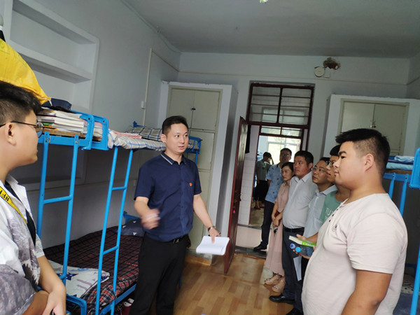 每到一处,周书记都仔细查看宿舍环境卫生,了解宿舍生活基本设施运行情况,特别强调要把公寓卫生检查落到实处,确保宿舍干净,整洁。