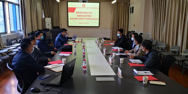 了解学院基本情况后,市场总监李予新从企业发展的历史、公司现状、教育理念、目前合作办学的规模及分布等方面简要介绍了鼎利教育集团以及河南公司的基本情况。时明德主任对校企合作办产业学院的意向进行了分析,重点谈了产业学院的合作形式、管理方式和培养模式和合作专业等内容。教学总监张连杰重点结合人才培养方案的制定等内容谈了初步构想和建议。