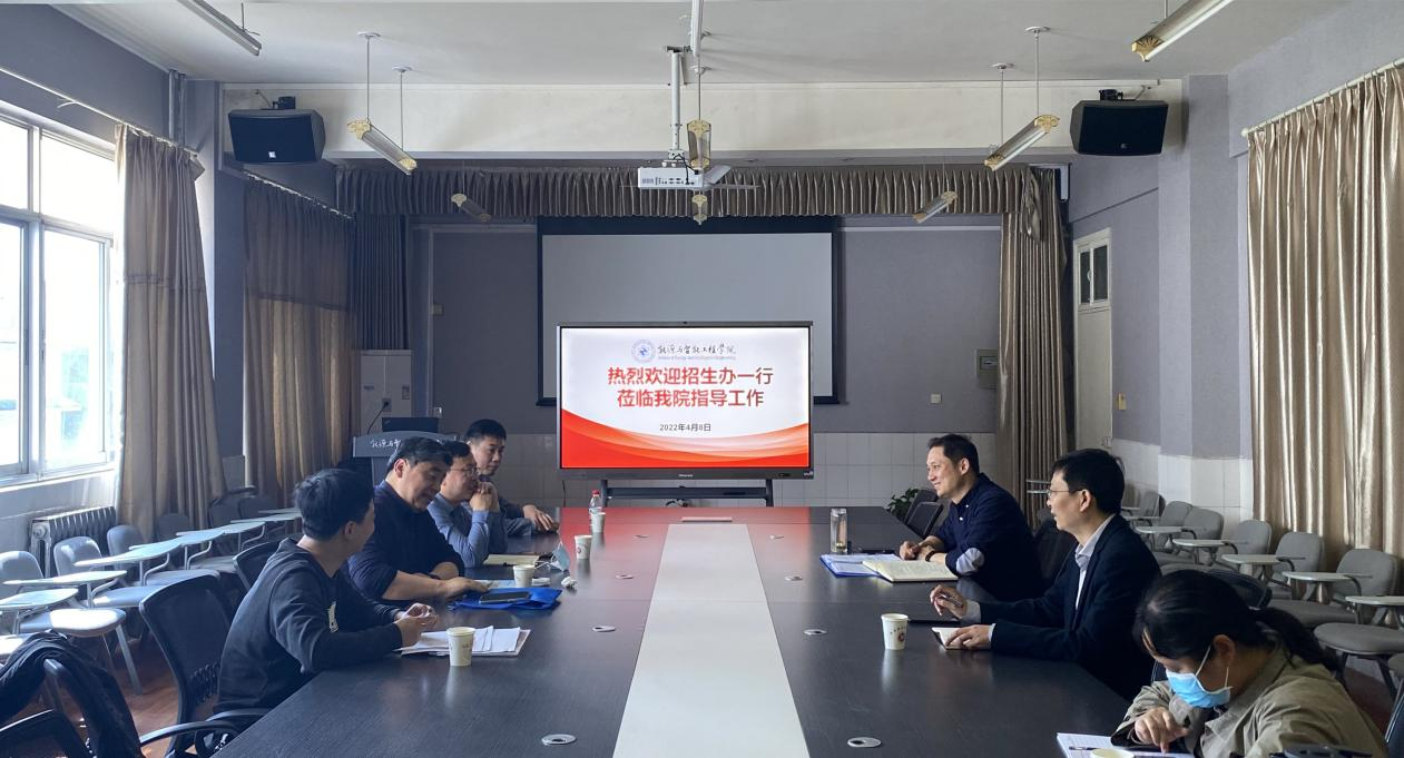 为加强学院联系、进一步做好2022年招生宣传工作,4月8日下午,我校招生办公室主任席波、副主任杨颖辉、招生科长刘博、信息科科长裴广祥一行深入我院进行工作指导和座谈交流。座谈会在实验楼3401WilliamHILL中国会议室召开,院党委书记周凯、副院长王硕(主持工作)出席会议,招生专员黄润芸参会。