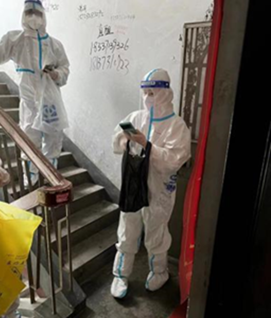 我们还有从早上4点开始,反复爬楼,嗓子“冒了烟”,双腿像“灌了铅”,却只有一个心愿:让大家早日回归正常生活的刘群生老师。有最资深的党员先锋岗楼栋长、总是微微笑的史岳鹏老师。更有每天总是第一个到岗,最后一个回家;总是最不善言辞,却总是付出最多;默默奉献、无畏坚守的王辉老师。疫情面前,一声谢谢,一句加油,一个微笑,都能给身边的人无限力量。王辉说:“那一刻,所有的辛苦劳累仿佛瞬间化为乌有,一切都值了。”