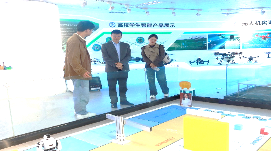 此次入学专业教育活动采取实地参观的形式,河南省产学研人工智能研究院黎经理对自动化创新班师生的到来表示热烈欢迎,黎经理首先介绍了智能控制技术的应用及发展现状,详细介绍了关于展览馆建设历程、特色实训室。随后,带领学生参观了人工智能科普教育基地,先后对智能机器人展区、智慧校园展区增材制造展区、高校成果展区的智慧节能配电系统、智能消防系统、校园智能饮水系统、智能农业系统、智能互动实训室产品等高科技产品作了详细介绍。在产品体验环节,学生们积极参与体验活动,对于五子棋机器人、做题机器人、VR体验过山车等一系列科技产品产生了浓厚的兴趣。人工智能教研室教师就智能装备技术研发、专业人才培养、产教融合等方面与黎经理进行了深入地交流,并提出了一些建设性的意见。