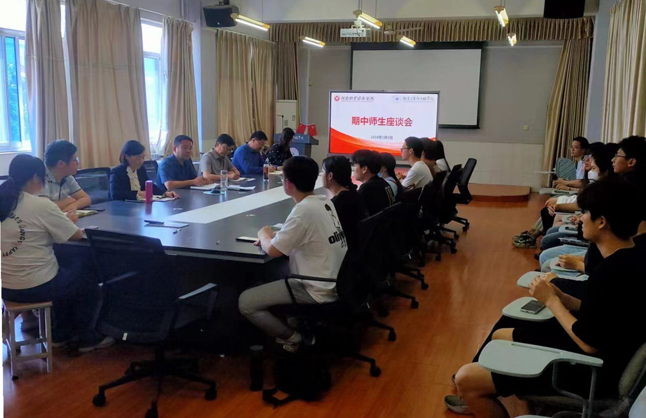 检查开学以来的教学工作,了解学生的思想动态和学习生活状况,扎实推进日常教学和学生管理工作见实效,促进师生共同进步。2024年5月9日中午,我院在学院会议室召开了本学期期中师生座谈会。学院党委书记赵贺然、院长王硕、副书记党美珠、副院长史岳鹏、各教研室主任及各班代表参加座谈会。会议由教学办主任崔明倜主持。