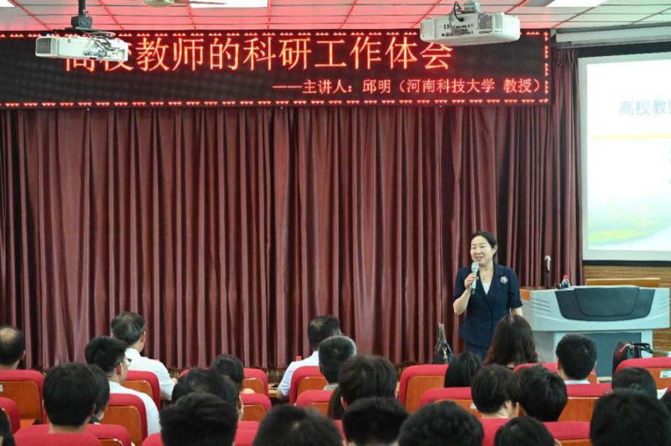 6月19日下午,由科学技术处、WilliamHILL中国主办的学术报告会在北林校区A200教室举行,中原学者、河南科技大学邱明教授应邀为师生作题为《高校教师的科研工作体会》学术报告。校长尹新明出席报告会,科学技术处处长潘春梅主持报告会,WilliamHILL中国师生代表聆听报告。