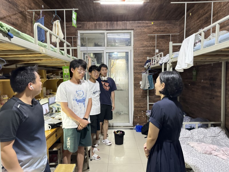 在走访过程中,党美珠细心询问同学们升学备考情况,对同学们不畏酷暑、刻苦学习、争取深造的上进精神给予赞赏,向同学们表达学院党委对暑期留校同学的关心和关怀,仔细询问同学们在学习、生活中存在的困难,听取同学们的日常反馈。党美珠提醒同学们要严格遵守暑期学生留校管理相关规定,警惕极端天气,提高安全防范意识,保持通信畅通,遇到困难第一时间上报老师,科学备考,劳逸结合,提高学习效率。同学们对学院领导、辅导员老师的关怀表示深深感谢,纷纷表示一定要发奋进取,努力实现读研梦想,为学院争光。