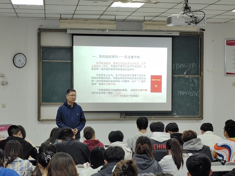 党课伊始,吴彦生向同学们介绍了中国共产党的组织体系,中国共产党是按照民主集中制组织起来的统一整体,要坚持和健全民主集中制的原则,这对党和国家的前途和命运具有重大意义。其次,中国共产党的纪律也十分重要,是党的事业取得胜利的重要保证。接着,吴老师表示,党的纪律是维护党内团结统一的重要武器,加强党的纪律建设是完成党的任务的重要保证,是全面从严治党的治本之策。最后,吴老师希望同学们继续努力,时刻以党员标准要求自己,积极向党组织靠拢,争取早日成长为一名有原则,有纪律的模范党员。