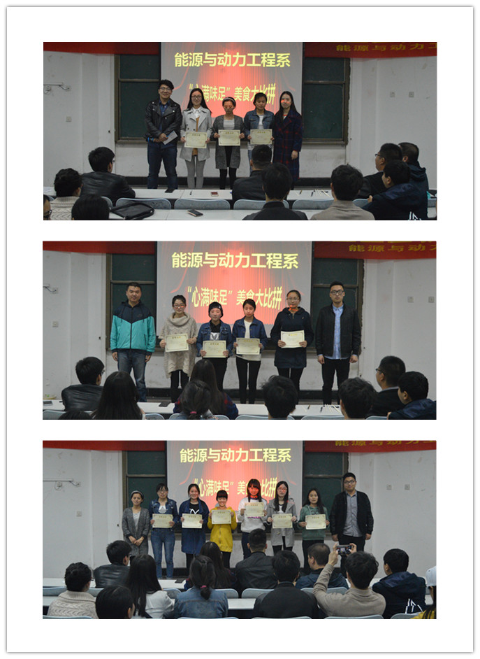 为陶冶我系女大学生情操,培养女学生动手能力和创造能力,按照“完美女生”三三五教育工程的活动要求,3月24日晚7点,能源与动力工程系在教学楼A300,开展了“心满味足”美食大比拼活动,活动由女生部部长王瑞爽同学主持,系辅导员耿李姗、系主席团成员担任活动评委,来自8支代表队的24名女生及亲友团参加了此次活动。