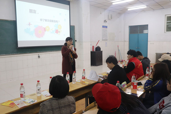 为倡导当代大学生奉献爱心、关爱社会,营造师生积极参与无偿献血的良好氛围。3月24日下午三点,williamhill威廉希尔青年志愿者联合会、无偿献血协会邀请河南省红十字血液中心采血二科科长张淑琴、副科长朱晓红和王莉老师为英才校区的同学们做了关于无献血知识的专题讲座。