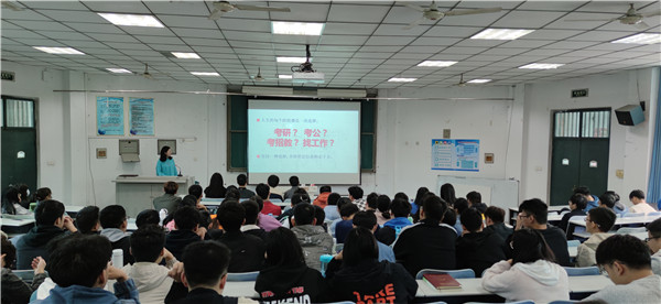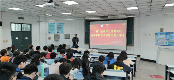西安建筑科技大学师永霞就如何选择目标院校、考研目标的树立以及如何掌握复试技巧等方面为同学们一一讲解;郑州轻工业大学的栾琳琳以“选择”开题,就同学们考研、考公、就业等分析选择的重要性,鼓励同学们坚定自己的信念;上海理工大学康学良从自己的备考策略、复习计划等为同学们做了详细介绍;中国农业大学王懂分别从考研前期准备、如何快速有效掌握第一手的复习资料等方面进行分享。最后,段欢欢老师做了总结发言,考研的成功离不开内心的坚持与努力,离不开强大的心态调节能力,段老师鼓励同学们从现在开始,做好基础课和专业课的课堂学习,一次性通过四六级考试,从而为接下来的考研打好基础。