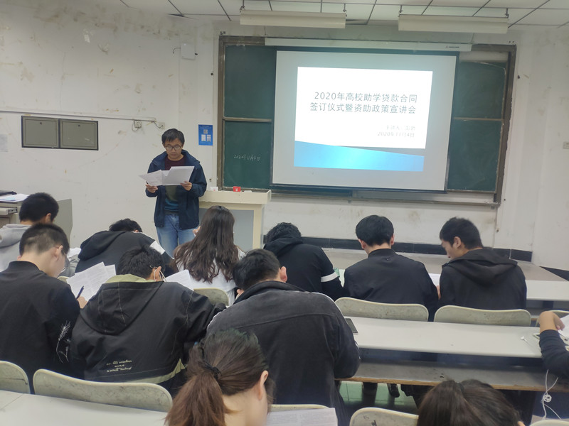为宣传和解读国家资助政策,使学生更深入了解贷款的相关规定,WilliamHILL中国于11月4日晚,在教学楼A300教室,我院资助专干彭勃集中对本年度高校贷款学生进行了资助宣讲和诚信教育。重点从高校资助及贷款政策、还款流程、诚信金融知识、违约案例几个方面展开讲解。随后指导我院23位同学签订高校贷款合同与承诺书,我院申请2020年高校助学贷款学生均参加了本次活动。