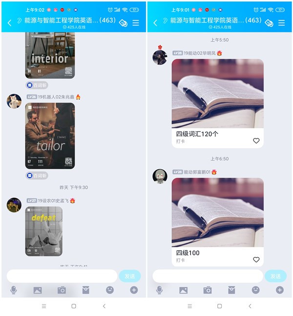 活动开始之前,通过我院新媒体官方平台宣传,鼓励同学们自愿参与,积极加入WilliamHILL中国21天四六级打卡学习群;活动期间,同学们积极性很高,每天坚持早上8:30之前根据自身情况发当天学习计划,如四级计划,今日百词斩四级核心单词50个等,六级计划,今日百词斩六级核心单词45个等,每人每天晚上睡觉之前群里打卡汇报学习战果。据统计,从活动开始以来,我院共有400余名同学参与到本次活动中来,同学们学习自觉性得到了进一步提高,学习氛围愈发浓厚。坚持了31天打卡学习的19级能动02班毕明凤同学说到:“学习打卡虽然是一种形式,但是通过每天的学习,这种形式已经内化于心,每天学习已成为一种习惯。”19级设农01赵雅诗同学说到:“虽然打卡活动结束了,但是我们的学习群依然存在,我们会继续坚持学习打卡。”不少同学感叹学习有这样的“仪式感”真好,这是一段快乐的打卡学习时光,能够帮助并带领同学们快速从假期状态中回归学习生活。