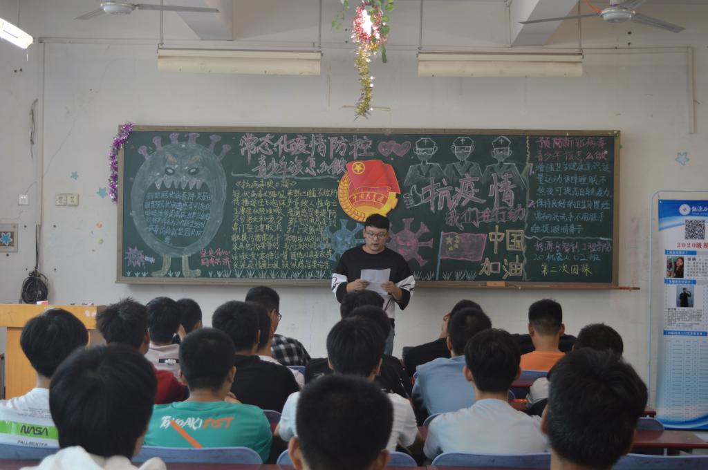 团课伊始,各班团支书介绍到:“常态化防控要求,密切跟踪研判疫情形势变化,及时优化调整防控策略举措,切实做到疫情防控常态化、生产生活正常化。”其中,20机器人01班郭世统演讲《疫情常态化,青年勇担当》,希望同学们在疫情期间坚守自我岗位,遵守学校章制度。20机器人02班107宿舍给大家演讲《防控疫情,从我做起》,希望同学们从生活中点点滴滴的小事做起,用新的心态融入集体生活中来。随后,同学们共同阅读了《做好校园常态化疫情防控,从我做起!》校学生会致全体大学生倡议书,并纷纷表示要做到:防护意识不降级,防护措施不放松,非必要时不外出,遵守规则守纪律,不负韶华勤读书。最后,各班团支书带领大家完成青年大学习,本次团课在同学们积极配合下及团支书的精心准备下圆满结束。