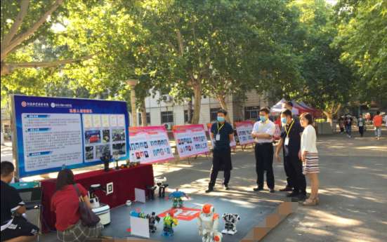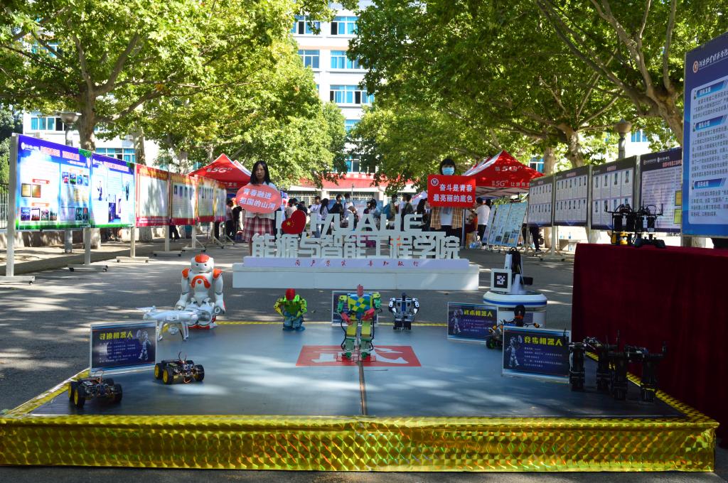 机器人擂台热闹激烈,吸引了众多新生驻足观看,身着绿色仔裤、蓝色外套名叫“街舞小子”的舞蹈机器人在学生的操作下动感十足,倒立旋转的高难度动作精巧准确;获得全国机器人大赛三等奖的武术机器人具有闪电般快速的反应能力和驱动能力,不仅能相互战斗还能与主机器人周旋;团队成员的详细介绍、精准操作,把人类智慧与机器功能高度结合,机器人们的精彩表演赢得了阵阵掌声,学科体验开启“智能之门”,激发了新生们浓厚的专业兴趣,专业的魅力深深的吸引了初入校的小20们。