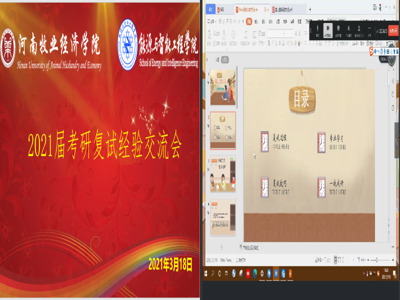 为了有针对性的为我院考研学生提供复试指导和调剂指导,帮助学生顺利升学。2020年3月18日晚6:30。我院通过“钉钉会议”在线举行2021年度考研复试及调剂经验分享交流会,邀请到2016级的四位优秀同学分享2020年度考研复试及调剂经验。全体辅导员老师及2017级考研学生、部分学生代表参加会议。