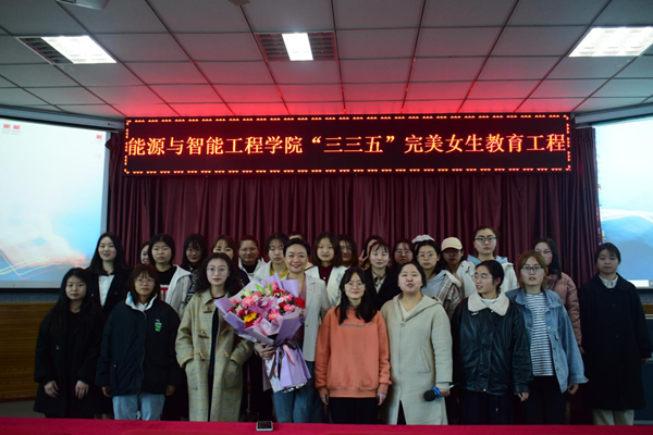 余总结合个人职业经历从“人生认知”、“人生规划”和“人生发展”三个方面,号召广大女同学对自己的大学生活设定合适的目标,做出合理的规划。首先,余总通过视频生动地分析了人生不同阶段的职业生涯特点,对在座女生进行了职业规划引导,树立正确求职观,提升自我职场品质;接下来,余总结合自己人生经历,告诉同学们要对自己有一个明确而精准的定位,从而在大学的学习生活中有目标地发展自己相应的才能,找到自己前行的方向;最后,余总希望同学们能把握最好的年华,提高自己,从而以更自信和优秀的个人形象进入适合自己的职业岗位。期间,同学们积极与余总互动,争相分享个人经历,女生们自发向余总献花,并留下珍贵合影,讲座在轻松活跃的气氛中落下帷幕。