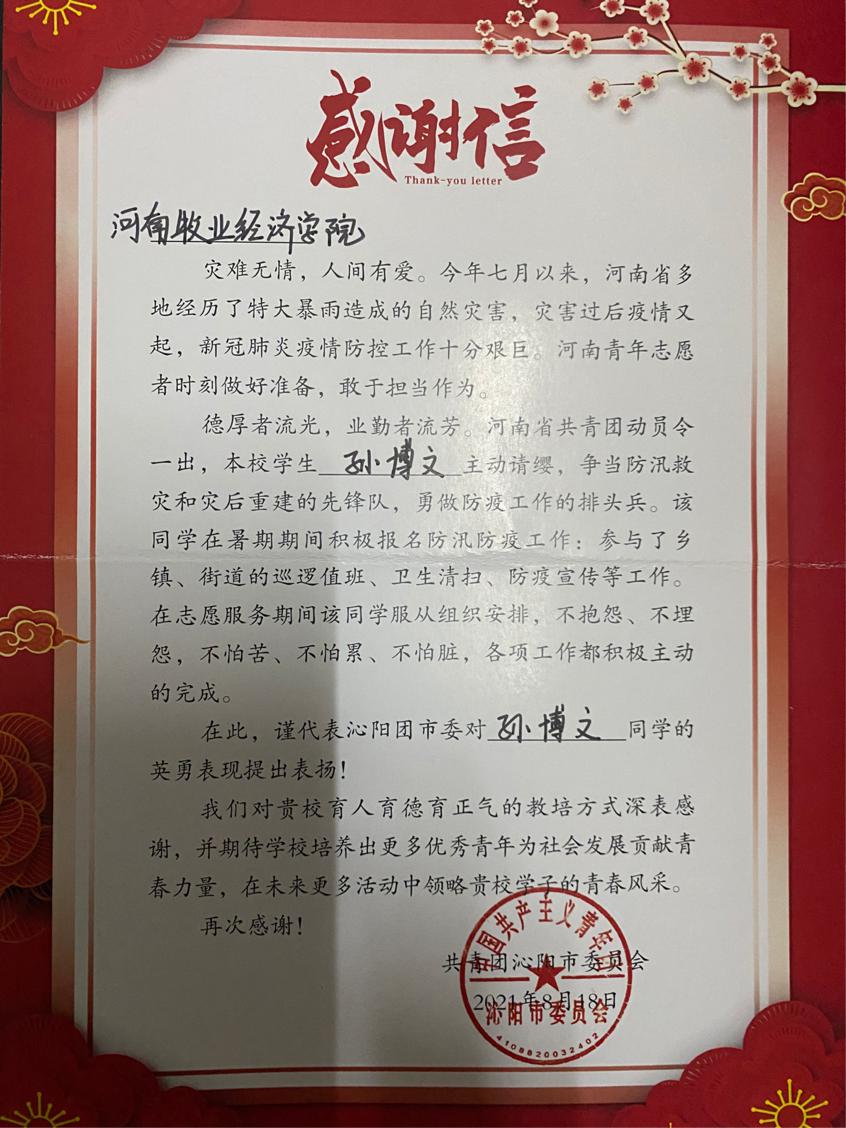 他表示:我们要牢记新时代大学生的使命,积极响应党和国家的号召,在国家需要的时候不畏艰险迎难而上,实际行动诠释青春活力,用满腔热情写就青春诗行。