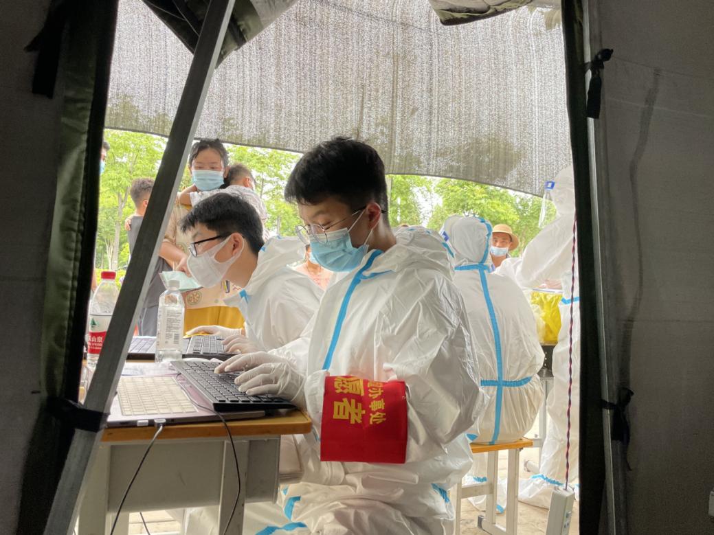 我在8月1日毫不犹豫地报名参加了家乡周口市鹿邑县谷阳办事处前罗楼行政村的防疫志愿者工作,对各户人家进行“一问、二查、三扫、四记”,在各个村口的卡点值班,对出入村庄的人员进行扫码登记,测量体温。从8月8日开始在鹿邑县全民核酸检测时期作为信息录入员与医务人员并肩战斗,以及维护现场秩序等的工作。