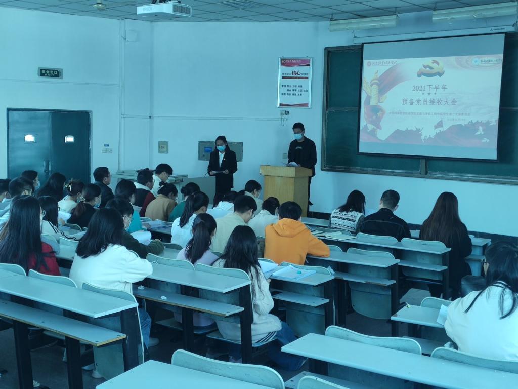 大会开始,全体起立,奏唱国歌,之后王婧宇同志宣布了本次大会拟接收预备党员名单。发展对象们逐一宣读《入党志愿书》,并向党组织汇报自身对党的认识、入党动机、个人经历以及在校表现等,随后入党介绍人黄润芸同志、王珂同志向大会逐一介绍发展对象的主要政治思想、学习、工作生活等情况,支部组织委员吴彦生同志向大会报告发展对象的现实表现的考察情况以及综合政治审查情况,与会党员对发展对象是否符合党员条件发表了意见。大会认为沈文鹏等18名同志基本符合党员条件,经与会正式党员投票表决,大会一致同意接收沈文鹏等18名同志成为中共预备党员。随后,沈文鹏等18名预备党员面对党旗进行庄严宣誓。同时也向大会表达了自身的想法与决心,不忘初心跟党走,在今后的学习工作中,坚定目标、严格要求自身。最后,支部书记黄润芸对本次接收的18名预备党员提出了要求,督促他们在日常的学习、工作、生活中发挥好党员的模范带头作用。