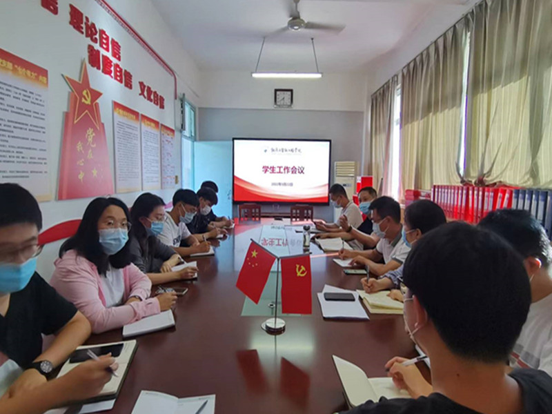 会上,周凯就现阶段新生入校后的疫情防控工作、宗教“双防”工作和意识形态工作进行了安排和部署,并对学生工作提出了要求:一是要统一思想,提高政治站位,凝结正能量;二是要围绕学生,服务学生,关心关怀学生;三是要做好思想政治工作,守好青年大学生的思想阵地。周书记强调,学生工作队伍要能干事、会干事、干成事、不出事,工作效率讲究快、实、细,落实好人才培养的根本目标。党美珠就校园安全稳定、疫情防控、重点学生关注、四级网格化管理和奖助学金评定等工作进行了详细的安排和部署。院团委副书记吴彦生、李永振和各辅导员老师分别就近期工作进行了汇报。