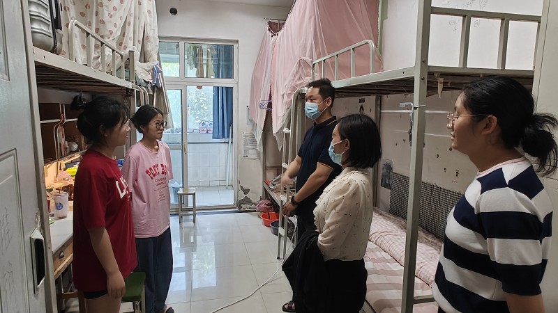 在走访宿舍过程中,王院长、党书记同暑期留校同学亲切交谈,了解同学们升学备考情况,询问同学们学习生活上是否存在困难,对同学们刻苦学习、努力读研深造的进取精神给予肯定,提醒同学们要严格遵守暑期学生留校管理相关规定,做好高温天气防暑和防范强对流天气,遇到困难及时上报老师,安心复习,科学备考,祝福同学们考研上岸。同学们对学院领导、辅导员老师的到来表示热烈欢迎,积极汇报了学习生活上的情况,对学院给予的关怀和关心表示深深感谢,同学们纷纷表示一定要再接再厉,努力实现读研梦想,为学院争光。