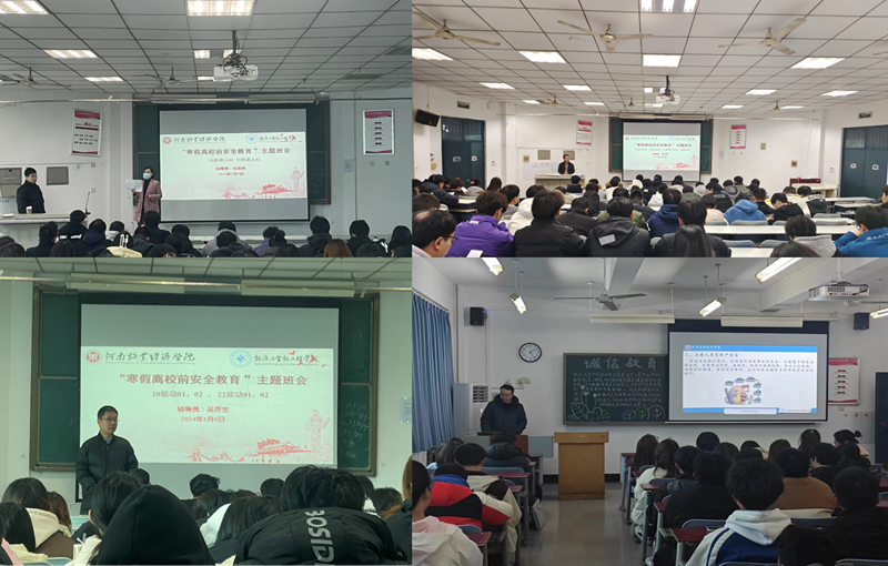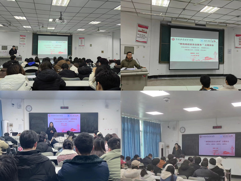 班会上辅导员老师向同学们强调了安全注意事项。一要注意离校安全:在离校前要关闭宿舍内所有电器,做到人走断电,离校返家后,须第一时间向辅导员老师发送信息报平安。二要注意交通安全:自觉遵守交通规则,不因车费便宜而乘坐无客运资质的车辆;三要注意人身及财产安全:增强自我保护意识,杜绝意外伤害事故的发生;自觉遵守国家法律法规,远离非法传销、套路贷、电信诈骗等陷阱,防止上当受骗,确保联络畅通,若遇突发事件,应及时报告辅导员老师或学校相关部门。四要注意防火用电安全:要树立环保意识,不购买和燃放非法、伪劣、超标的烟花爆竹,且应在指定时间、地点燃放,做好身体防护,以防伤己伤人、火灾事故发生,树牢消防安全意识,居家生活及取暖应注意用火用电用气安全。五要注意假期实践安全:假期兼职或实习、实践要提高防范意识,从正规渠道获取信息,不要被优厚的待遇所迷惑,要提高警惕,发现被骗后要找合适的时机与当地公安机关或亲属、老师取得联系,及时报警,避免产生不良后果。六要注意卫生和饮食安全:勤洗手、常通风,注意个人卫生;倡树文明新风,参加各类聚会时积极做到不饮酒、不劝酒,避免因饮酒过量带来的各类安全问题;倡导健康生活方式,不暴饮暴食,少吃生冷食物,避免发生食源性疾病。七要注意疾病预防和低温雨雪冰冻灾害天气防范:要增强防病意识和自我防护能力,自觉践行“健康第一”理念;密切关注气象部门发布的天气预报和雨雪、冰冻等灾害预警信息,提前做好应对准备,合理安排出行计划。八要注意保持身心健康:保持作息时间规律,通过坚持每日适当运动加强体育锻炼,增强身体素质;通过阅读经典书籍做到文明修身、调整情绪;多与家人沟通交流,建立相互关爱、和谐温暖的家庭氛围。