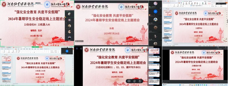 会议伊始,辅导员老师针对近期部分地区发生极端降雨天气及其引发的严重自然灾害等事例,提醒同学们要密切防范高温、台风、暴雨等灾害天气,密切关注气象部门发布的天气预报和各种灾害预警信息,提前做好应对准备。辅导员老师提醒同学们在暑假期间应遵守法律法规,不贪小利、远离诱惑,谨防传销陷阱、电信诈骗;自觉遵守交通法规,主动避让行驶车辆,注意乘车安全;合理饮食,健康饮食,做好个人卫生;注重心理健康,保持规律作息,有困难第一时间向老师和家长求助。班会最后,辅导员老师提醒同学们暑期期间要远离危险水源,严防溺水,要切实提高安全意识和自我保护能力。