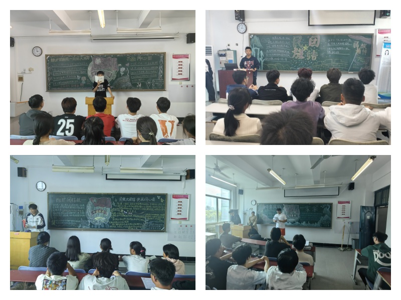 团课伊始,各班团支书通过播放视频、图片等资料,生动地展示了我国各民族在历史长河中的团结奋斗历程。从古代的丝绸之路到今天的“一带一路”,各民族共同创造了灿烂的中华文化,共同为国家的发展做出了巨大贡献。随后,通过观看《同心,绘就民族团结新图景》,深化青年学生对各民族休戚与共、荣辱与共、生死与共、命运与共的共同体理念的认识。接着,同学们就“民族大团结 共画同心圆”进行了主题演讲。同学们在演讲中提到了许多民族团结的先进事迹,从革命先辈们为了国家独立和民族解放而浴血奋战,到当代青年在科技创新、志愿服务等领域携手共进,这些事迹深深打动了在场的每一位青年团员,让他们深刻认识到,只有团结一心,才能克服困难,实现自己的目标。最后,在民族团结进步宣传歌曲《同心筑梦》的歌声中结束了本次团课。