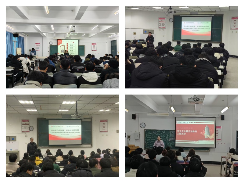 班会紧紧围绕安全教育、心理健康、意识形态、学风建设、职业生涯规划、法律法规、榜样垂范和应急应变等方面展开,向同学们强调了学习的重要性,一年之计在于春,呼吁同学们做好个人学业情况分析,查漏补缺,规划好新学期学习目标任务。班会上,辅导员和班主任老师提醒同学们在校期间理性消费,谨防校园贷陷阱和电信诈骗;外出时自觉遵守交通法规,主动避让行驶车辆,不乘坐非法营运车辆;合理饮食,劳逸结合,注意天气变化,做好个人防护,及时增添衣物;保持宿舍卫生清洁,营造温馨舒适的休息环境,妥善保管个人钱、财、物,宿舍无人时注意关门落锁,电器不使用时及时断电,不使用大功率电器;注重个人心理健康,有困难及时向老师求助疏导,文明上网,理性发声。此外,开展人身安全、财产安全、法律法规等方面教育,增强学生安全防范意识,提高自我防护能力,提升法律意识,做好自身健康安全第一责任人,营造“人人懂法律,个个讲安全”浓厚氛围。