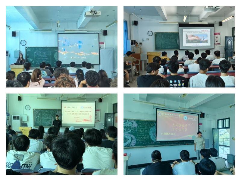 团课伊始,各班团支书聚焦核心精神,带领同学们深入学习习近平总书记关于防灾减灾救灾重要指示批示精神,深刻解读 “师生至上、生命至上” 的安全发展理念。团支书着重强调,新时代青年要将总书记的殷切嘱托转化为实际行动,主动扛起安全教育责任,既要做安全知识的学习者,更要做安全理念的传播者与践行者。在知识讲解环节,团支书们结合典型自然灾害案例,对极端天气下可能引发的自然灾害风险进行深入剖析。从洪涝、台风等灾害的形成原理,到地震、火灾等突发状况的应对策略,系统讲解防灾减灾常识与隐患规避方法,让安全知识入脑入心,有效提升了同学们的风险防范意识与应急处置能力。为强化学习效果,团课创新设置知识问答、情景模拟、小组讨论等互动环节。在知识问答中,同学们踊跃抢答,巩固安全知识;情景模拟里,大家身临其境,将理论转化为实践;小组讨论时,思维碰撞,分享实用的应急技巧。多样的形式充分调动起同学们的积极性,掀起学习安全知识的热潮。