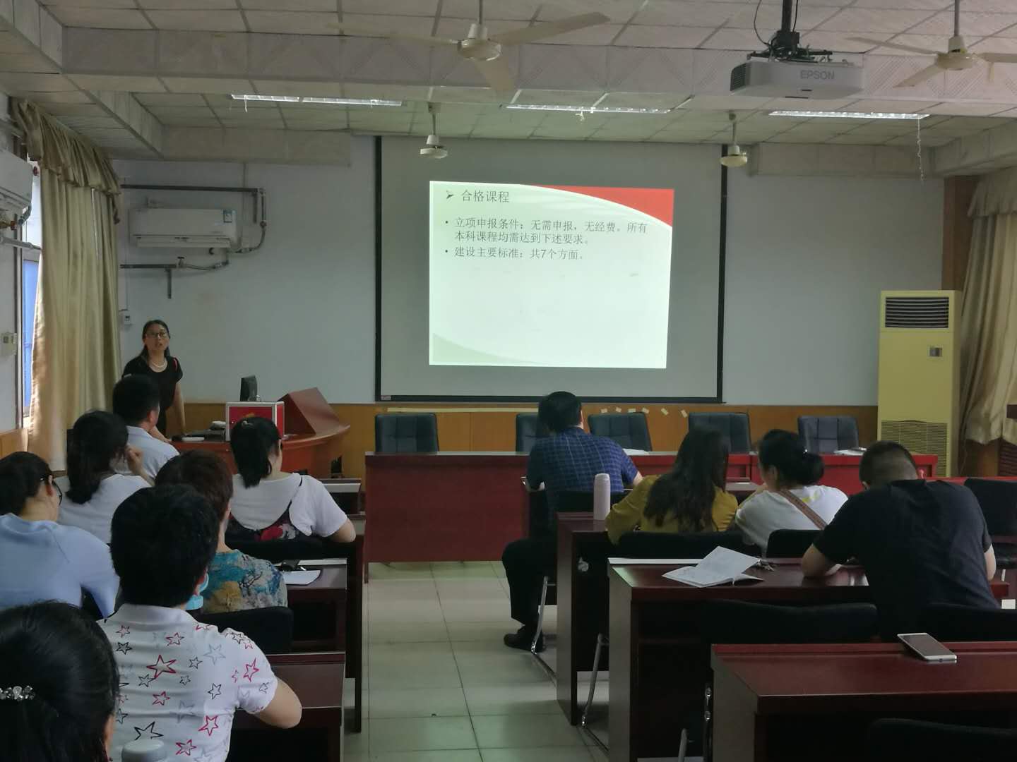 会上,副院长张荷丽传达了教务处《关于开展2018年度本科合格课程与优质课程建设的通知》。为帮助教师了解我校本科课程建设的管理办法和整体规划,进一步明确合格课程、优质课程、精品在线开放课程的申报条件和建设标准,张副院长领学了学校下发的两个文件中与教师、教研室相关的主要内容,使每位教师了解了我校三级本科课程建设体系的基本思路,即“合格课程为基础,优质课程为重点,精品在线开放课程为示范和特色”,同时,重点针对合格课程的7条建设标准,强调了教师们应关注的实习实训大纲、考核大纲和过程考核记录规范、完整等要求。随后,张副院长宣读了我院本科课程建设领导小组和课程建设规划(讨论稿),提出了本次合格课程和优质课程申报的具体要求。