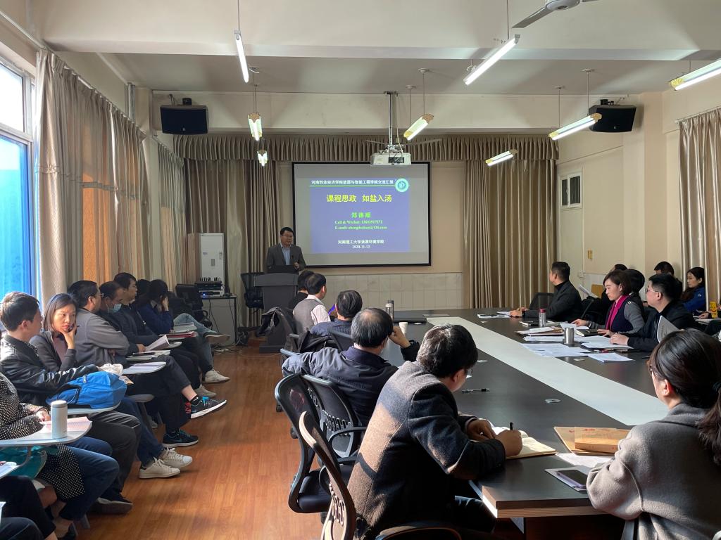 2020年11月12日下午,学院邀请河南理工大学资源环境学院的博士生导师郑德顺教授在院会议室作“课程思政如盐入汤”的专题报告,报告由周凯书记主持。