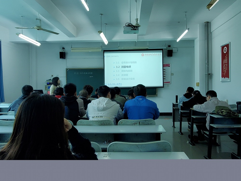 孔老师讲授的内容是机械工程测试技术中的测量电桥。孔老师简要对前一节的主要内容进行了回顾复习,并引出了本节课的学习目标,随后以实际案例引出测量电桥在信号转换与调理中的重要作用。随后孔老师由浅入深地讲授了直流电桥的测量原理、加减特性及温度补偿方法,在讲授中适时引入了典型案例分析,将抽象的内容具体化、生动化,学生们全身贯注,与老师积极互动,课堂气氛活跃,课堂效果良好。