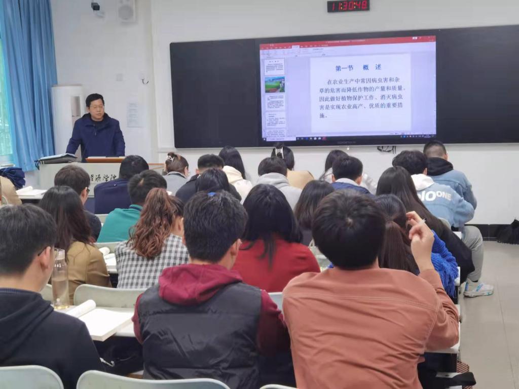 在授课过程中,王小飞由植物保护的方法引入这节课的讲授内容——植保机械,进一步引出喷雾机的结构和工作原理,并对手工喷雾机和机动喷雾机的结构和原理进行详细介绍。王小飞老师授课有层次,有条理,讲课声音宏亮。同时在授课过程中,王老师通过大量的图片和视频,结合自己的实际工作经验进行讲解,使学生在轻松学习理论知识的过程中学到在课本之外的知识。