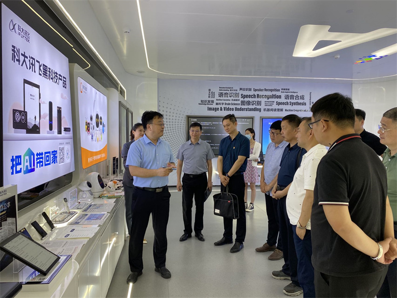 周书记一行参观了人工智能展厅,了解科大讯飞语音交互和认知智能技术在翻译转写、教育、医疗、工业、农业、畜牧养殖业、政法、城市治理等领域的应用,并进行了产品体验,参观了河南牧邦实业总部、畜禽邦等其他10余家相关企业。