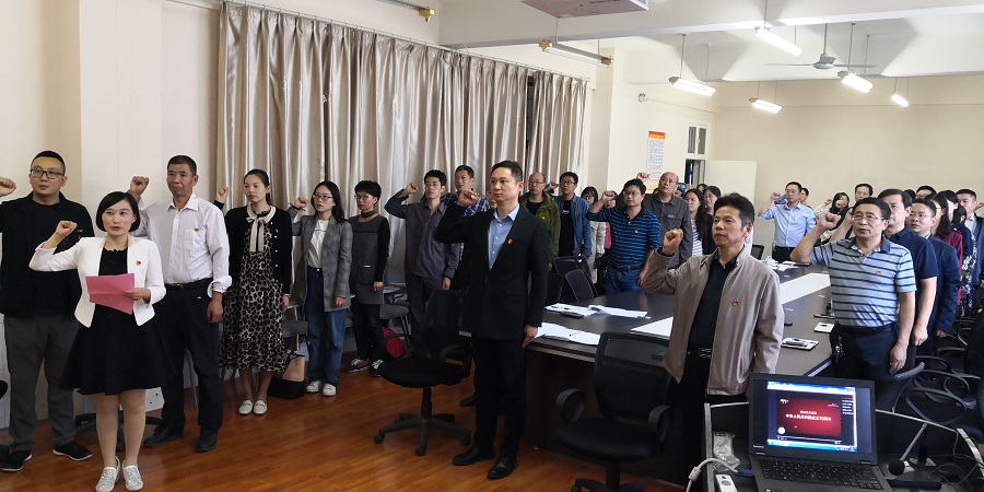大会在庄严雄壮的国歌中拉开序幕,全体党员首先面对鲜红的党旗,高举右拳,重温了入党誓词。一句句铿锵有力的入党宣誓,彰显了全体党员不忘初心、牢记使命的坚定政治信念。