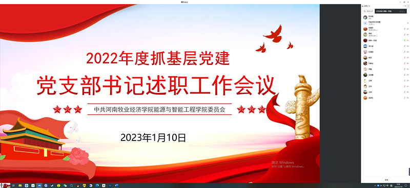 最后,周凯书记对各支部年度党建工作进行了点评并提出要求。他指出,2022年各党支部抓党建工作成效显著,但还存在一些不足。他强调,结合2023年“支部建设年”活动,一是要持续深入贯彻理论学习,对党的二十大精神和创新理论学习做到“真学、真信、真懂、真用”,坚持读原著、学原理,利用好网络信息化平台随时随地学;二是要始终抓好支部组织建设,树立“理直气壮抓党建,尽心尽力抓党建”的思想,坚持党建和业务“同部署、同安排、同谋划”;三是要着力打造意识形态工作标准化建设,提升预判能力和应急处置能力,增强意识形态主导权和话语权,保证意识形态阵地可管可控;四是要全面构建党建一体化思维,以党建为统领,强化党员目标管理,利用信息化管理手段提升工作效率,创新工作方式,早谋划,早思考,早主动,希望各支部书记能够再接再厉,同心同德,推动学院党建工作再上新台阶。
