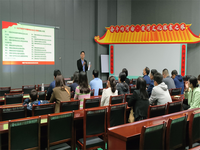 在黄河博物馆一楼4D影厅,学院党委书记周凯给全体党员作了题为《感悟思想伟力,凝聚奋进力量》专题党课,从学习贯彻习近平新时代中国特色社会主义思想主题教育的重大意义、核心内容及要求进行了阐述,讲解了“10个明确”和“14个坚持”“13个方面成就”的相互关系,他指出这次参观学习活动,是一次特别有意义的学习之旅,大家沿着习近平总书记的脚步,学习了黄河流域生态保护和高质量发展的意义,学习了中华民族在同黄河水患的斗争中展现的不屈不挠、顽强拼搏的奋斗精神,锤炼了政治品格,坚定了理想信念。他号召全体党员进一步全面系统深入学习习近平新时代中国特色社会主义思想,做到真学真懂真信真用;要进一步紧紧围绕新时代新征程党的中心任务,胸怀“国之大者”、牢记“省之要者”,凝聚奋进力量,为推进学校高质量发展、现代化河南建设和中华民族伟大复兴做出应有贡献。
