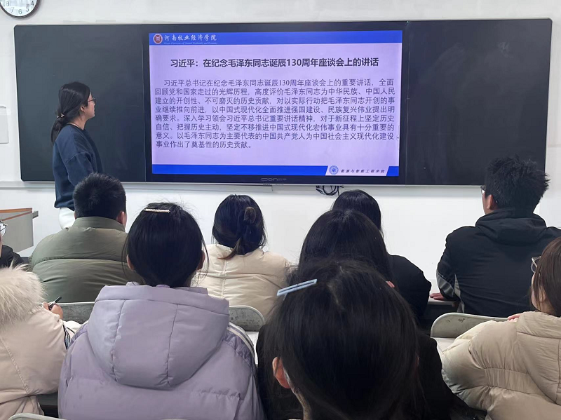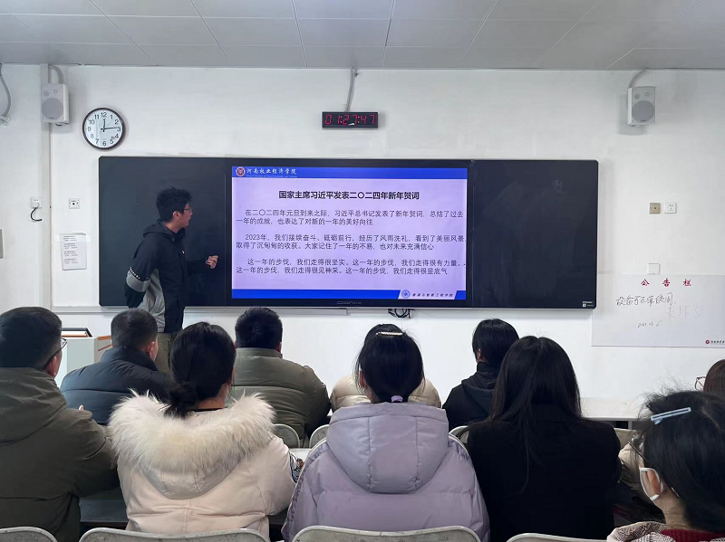 会上,支部党员白瞻琳带领支部同志学习了习近平总书记在纪念毛泽东同志诞辰130周年座谈会上的重要讲话精神。习近平总书记指出:“在几十年艰难而辉煌的战斗生涯中,毛泽东同志为中华民族、中国人民建立了不可磨灭的历史功勋,作出了光耀千秋的历史贡献。”毛泽东思想是我们党的宝贵精神财富,学习毛泽东思想、研究毛泽东思想是一项长期的重要政治任务。支部党员程兴然带领支部同志们学习了习近平总书记2024年新年贺词。习近平总书记发表的2024年新年贺词引起了支部党员的热烈反响。大家纷纷表示,要牢记习近平主席的殷切关怀和谆谆嘱托,在奋进中拥抱梦想,将时代的担子勇扛在肩,以青春之名创造无限可能,为民族复兴挺膺担当。