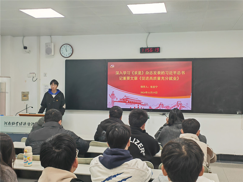 会上,支部副书记高萌带领支部全体党员深入学习了习近平总书记在中央政治局第十七次集体学习时的重要讲话,深刻领会习近平总书记的讲话精神。支部党员张亚宁带领全体支部党员深入学习了《求是》杂志发表的习近平总书记重要文章《促进高质量充分就业》,并结合自身实际分享了感悟和体会,他表示,作为毕业生党员应努力提升自身综合素质,增强就业竞争力,以适应社会发展需求。支部书记黄冰指出,全体党员要认真学习领会习近平总书记重要讲话精神和文章,做到学深悟透、融会贯通。在就业择业过程中,要树立正确观念,积极发挥先锋模范作用,勇于担当作为,为国家建设和社会发展贡献力量。同时,鼓励党员之间加强学习交流,形成互帮互学、共同进步的良好氛围,不断提升党支部的凝聚力和战斗力。
