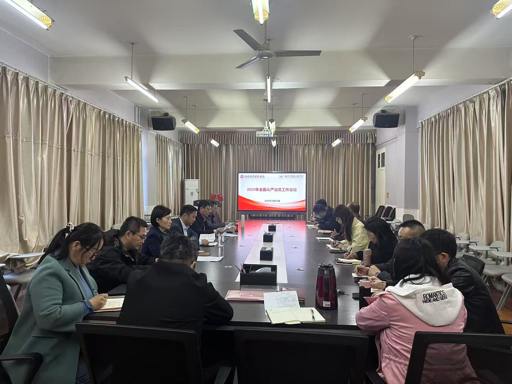 院长王硕传达了学校全面从严治党工作会议精神,党委副书记党美珠领学了《2025年纪检监察工作要点》(校纪发〔2025〕1号)的文件精神。