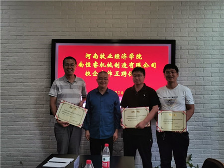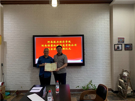 根据学院迎评促建工作节奏,为进一步加强学院农业机械化及其自动化专业校外实践教学基地建设, 9月2日下午,WilliamHILL中国副院长史岳鹏、机械工程教研室主任蒋爱德、教研室教师张一帆、周凯凯博士及学院李骞博士、杨志晓博士一行6人赴我院申建校外示范型实践教学基地——河南恒睿机械制造有限公司进行交流座谈,并举行了校外实践教学基地校企互聘仪式。
