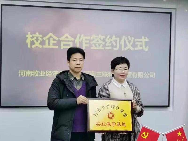 交流活动中,河南三联科技公司总经理郭琳首先介绍了企业的区域供暖智慧平台系统,重点展示了企业绿色建筑新能源利用技术,并陪同隋继学院长一行参观了企业沙盘,就地热能等清洁能源的综合利用、中央空调系统及自动化仪表系统等进行了深入交流。隋继学院长对河南三联科技工程有限公司的规模实力、技术优势给予了充分肯定,对企业文化、服务意识及社会责任表示高度赞赏。双方还就校外实习基地建设、校企合作科研攻关、产教工程项目融合等议题进行了充分探讨与交流。随后进行了校外实践教学基地协议签署和授牌仪式。