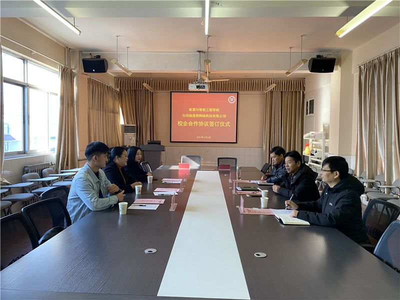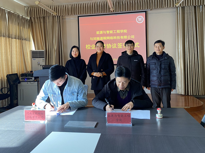 为更好地利用高等学校和企业单位的人才资源、科学研究和生产实践等优势,进一步促进产学研融合发展,1月6日上午,河南道秾网络科技有限公司副总经理陈慧娜、总经理助理魏娜、市场总监刘帅辉一行3人赴我院进行座谈交流并举行了校企合作协议签订仪式,院长隋继学、副院长王硕、副院长刘群生参加了此次座谈和签约仪式。会议由王硕副院长主持。