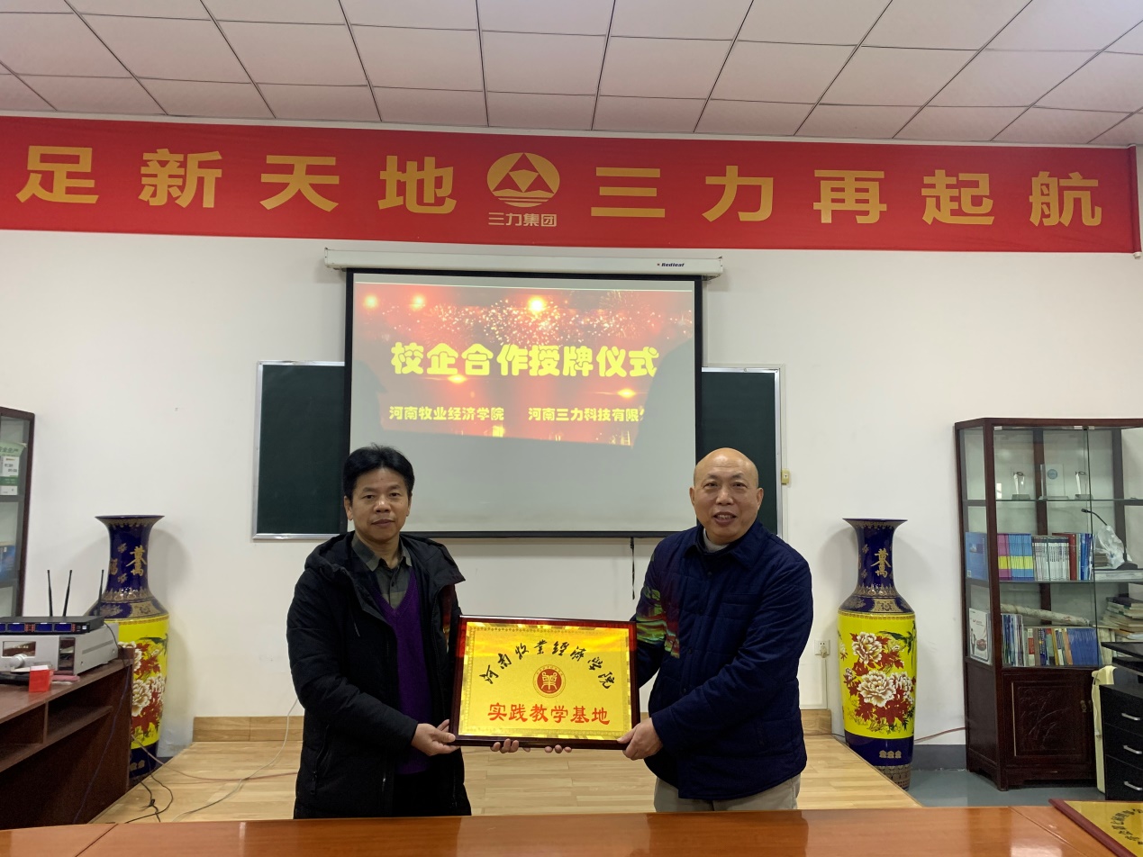 河南三力冷链科技有限公司董事长李琨对隋继学一行的到来表示热烈欢迎,并带领大家参观了企业现代化的生产车间和研发中心,考察了企业食堂等学生实习条件,并与企业进行了深入的座谈交流,对其承接的政府重点研发项目进行了技术指导。双方还就校企合作共同培养研发技术人员、校企融合共育应用型高素质人才的具体合作路径进行了规划,随后举行了校外实践教学基地签约和授牌仪式。