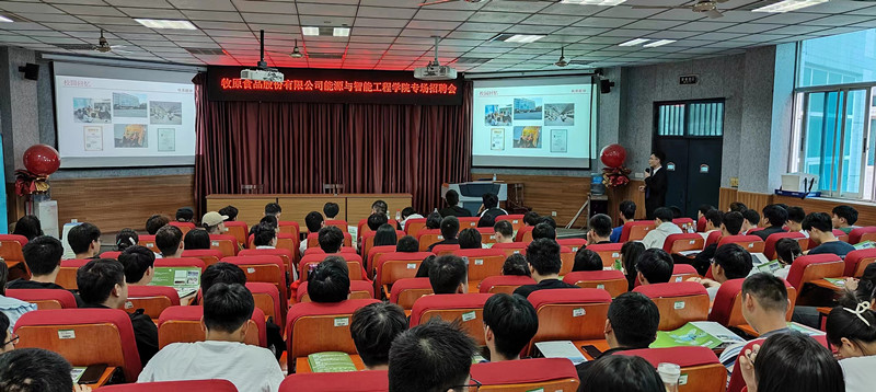 牧原食品股份有限公司始创于1992年,于2014年上市,公司现已形成集饲料加工、生猪育种、生猪养殖、屠宰加工为一体的猪肉产业链。会议伊始,我院2023届毕业生李军涛通过分享自己在牧原食品股份有限公司的成长经历介绍了公司平台、入职培训、工作氛围和企业文化,我院2020届毕业生魏永胜为在场的学弟学妹们答疑解惑,并通过播放公司宣传视频、展示PPT等方式向同学们介绍了公司的发展历程、企业荣誉、招聘职位和应聘流程。本次招聘面向我院开设的所有专业,对同学们提出的关心事宜,魏永胜做了耐心细致的解答,招聘会在热烈的掌声中圆满结束。